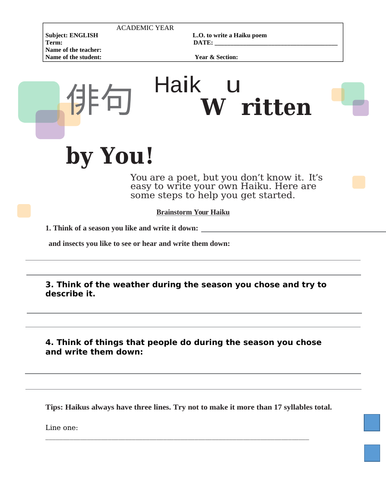 Haiku Poems Worksheets