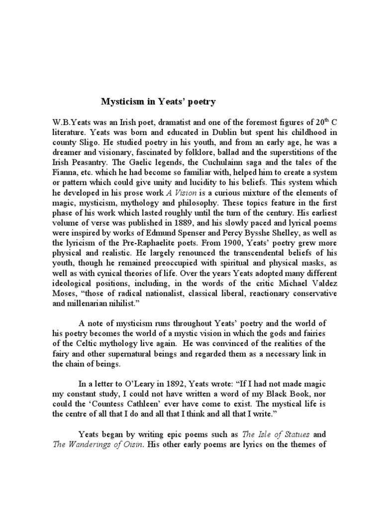 Doc The Development Of W B Yeats As A Poet Lisbern Shawn Academia Edu